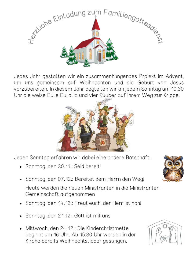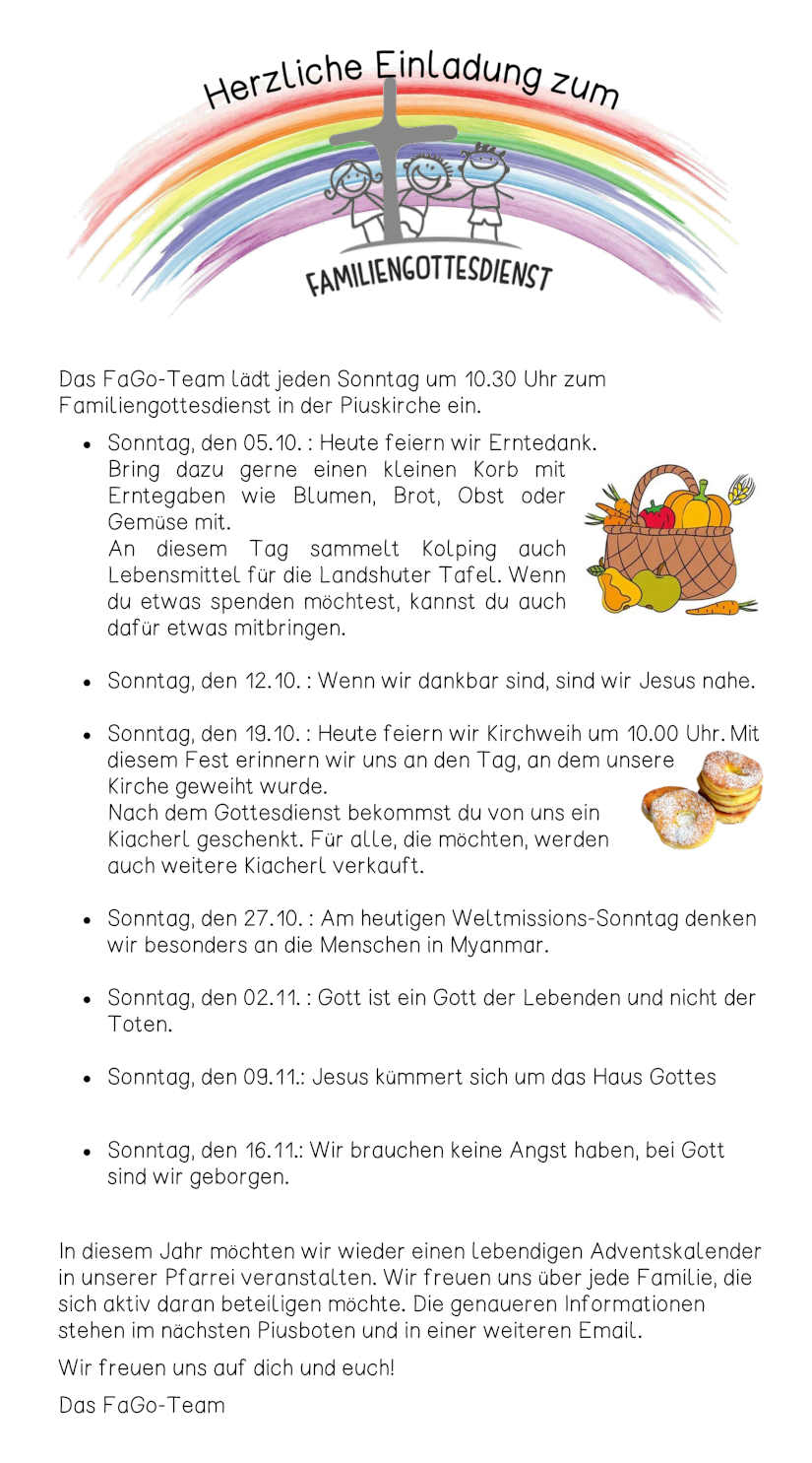 Wir feiern jeden Sonntag Familiengottesdienst und laden dazu alle Generationen ein.