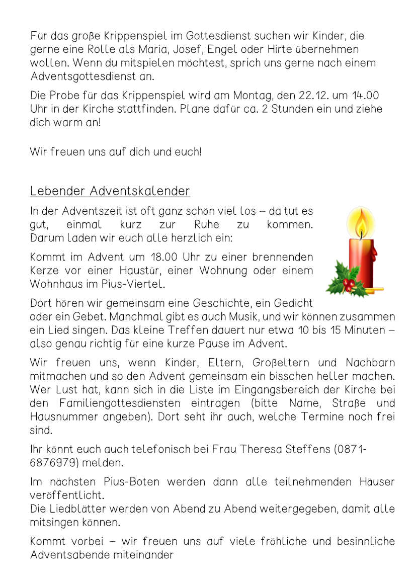 Die Mitfeiernden, vor allem auch Kinder, gestalten den Gottesdienst aktiv mit. Gemeinsam loben und preisen wir Gott und staunen über seine Welt.